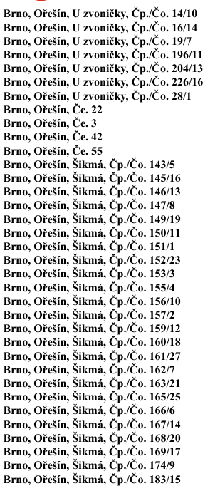 Vypnuté adresy: