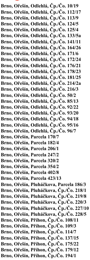 Vypnuté adresy: