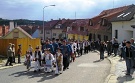 Hlavní symbol hodů, ozdobenou máji, vztyčili hasiči za vydatné pomoci ostatních spoluobčanů již navcečer v pátek. Hojný počet stavějících a přihlížejících byl prvním znamením, že bude o hody velký zájem. Přes dvacet metrů vysokou máji se podařilo tentokrát vztyčit na první pokus.